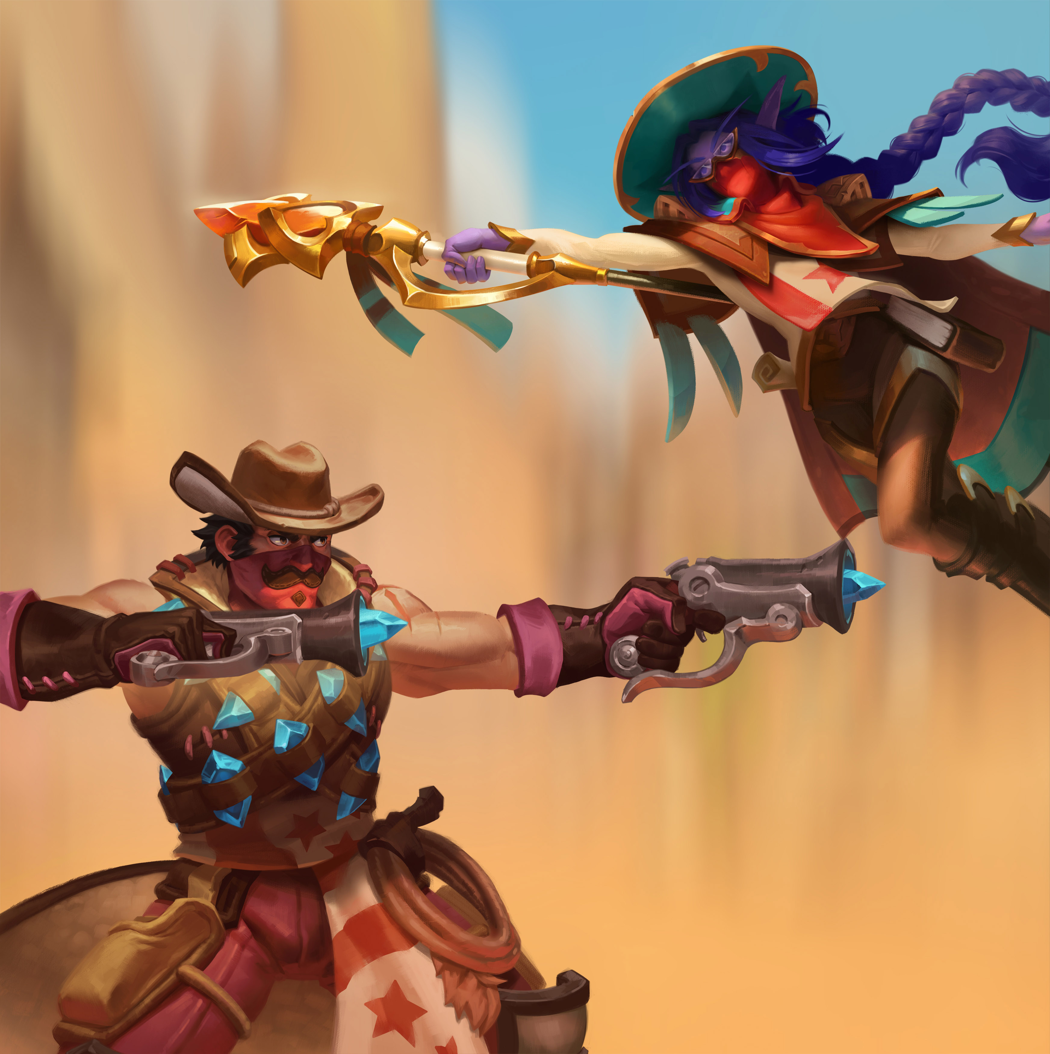 Presenting Showdown in the Badlands: our 2.5D animated cinematic announcing a Western-themed card expansion for Blizzard’s Hearthstone. It tells the story of a lawless land in which a mining company is bleeding the land dry of Azerite—while a noble group of outlaws tries to stop them.