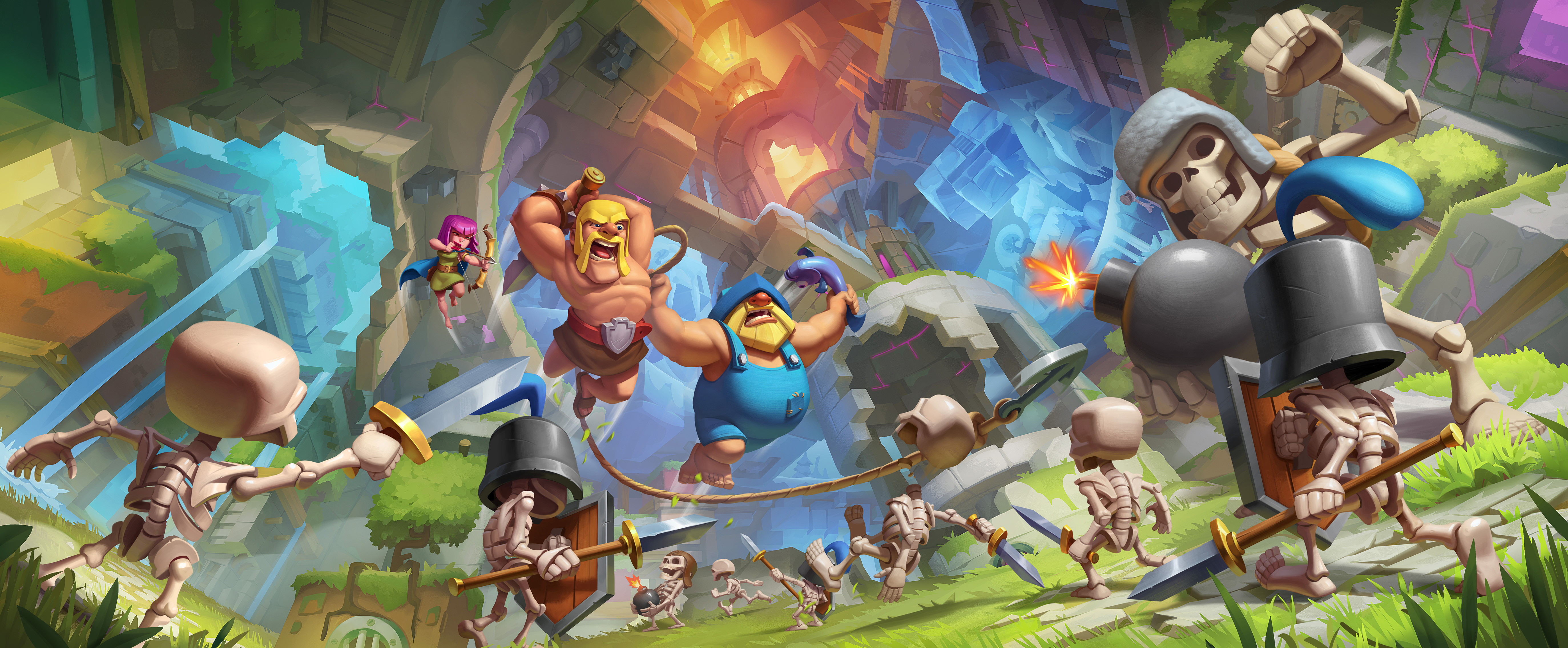 As part of our ongoing relationship with Supercell, we were tasked to create this initial piece of key art for their new IP, Project R.I.S.E. This game is currently in early development, but is set to be a social Action RPG Roguelite set in the Clash World!